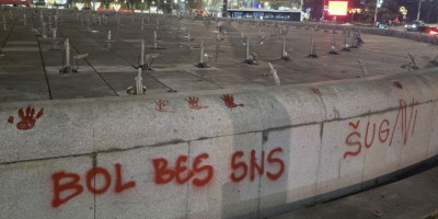 Ekstremisti demolirali fontanu na Slaviji nakon protesta! Ukradeni reflektori, polomljene ploče (FOTO)