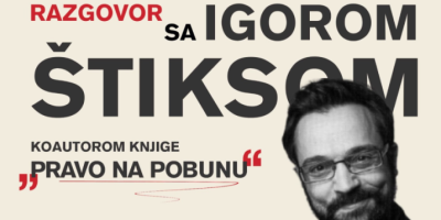" Razgovor sa Igorom Štiksom, koautorom knjige "Pravo na pobunu". Petak 27.12. u 13 časova. Molimo sve zainteresovane studente da se jave u DM, radi pravljenja spiska. Ulaz uz indeks! Pozivamo sve studente da nam se u petak u 13h pridruže na razgovoru sa Igorom Štiksom.