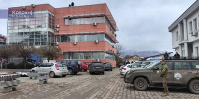 Ispred zgrade su naoružani pripadnici tzv. kosovske policije, a akciju nadgledaju vojnici Kfora i Euleksa.