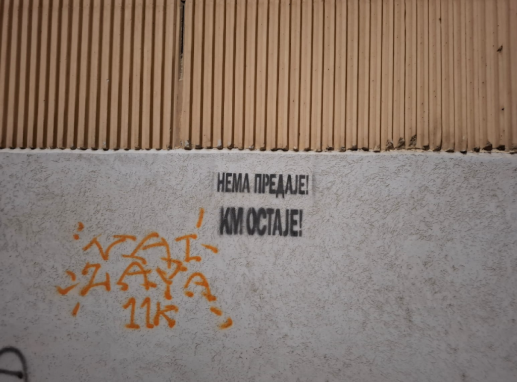 Ekipa Informera večeras je snimila nekoliko fotografija stanja u kom se nalazi zgrada, a na kojoj su nezadovoljni građani ostavili jasne poruke kao što su "nema predaje i KiM ostaje".