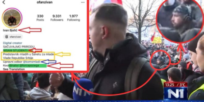 Kamera N1 je na današnjem protestu studenata uhvatila i Ivana Bjelića - opozicionog aktivistu, profesionalnog demonstranta koji je poznat po tome što pozira na Instagramu sa jurišnim puškama… pic.twitter.com/MSPPginV63