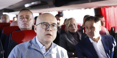Nakon izlaska iz autobusa državno rukovodstvo se pozdravilo sa radnicima i nadzornicima radova na samom putu.
