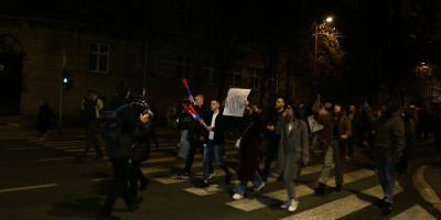 Danas se na protestu "studenata" pojavio i Lazar Dinić - opozicioni aktivista koji se maskirao u studenta i nedeljama blokira ostalim studentima rad fakulteta.