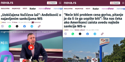 Naime, u jučerašnjem tekstu na portalu Nova prenose izjavu opozicionog analitičara Dragomira Anđelkovića koji je bio gost emisije "Među nama" na TV Nova u kojoj kaže da je priča o američkim sankcijama NIS-u uobičajena Vučićeva laž.