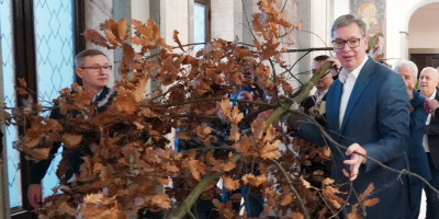 Badnjak je u holu zgrade osveštao episkop Petar, a osim predsednika Vučića unošenju Badnjaka prisustvovala su i deca srpske nacionalnosti iz Rumunije i Crne Gore koja borave u Beogradu povodom božićnih praznika.