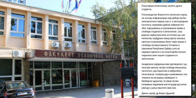 Poslovodstvo Fakulteta tehničkih nauka, na osnovu informacija koje dobija putem elektronskih poruka, kao i u neposrednom kontaktu, izražava duboku zabrinutost zbog narušavanja i ugrožavanja prava i sloboda studenata i zaposlenih. Još jednom nedvosmisleno ističemo da, kao kolektiv, osuđujemo svaku vrstu nasilja, pretnji i ugrožavanja bilo čijih prava i sloboda zagarantovanih Ustavom i zakonima Republike Srbije, što se naravno odnosi i na zloupotrebu ličnih podataka svih naših studenata i zaposlenih. Akademska zajednica ima odgovornost da poštuje zakone, neguje slobodu mišljenja, čestitost, dostojanstvo i međusobno poštovanje, toleranciju i uvažavanje, kao temelje za izgradnju pravednog i bezbednog društva, te ovim putem pozivamo nadležne institucije da hitno reaguju u cilju zaštite svih nas - poručio je dekan prof. Dumnić.