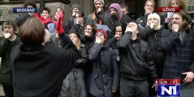 Skandalozan performans koji je juče izvela grupa studenata ispred zgrade Tehničkih fakulteta zgrozio je javnost u Srbiji, a neki su i preplašeni onim što su videli.