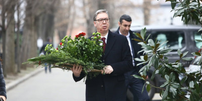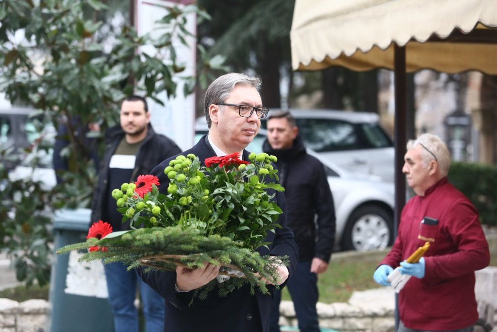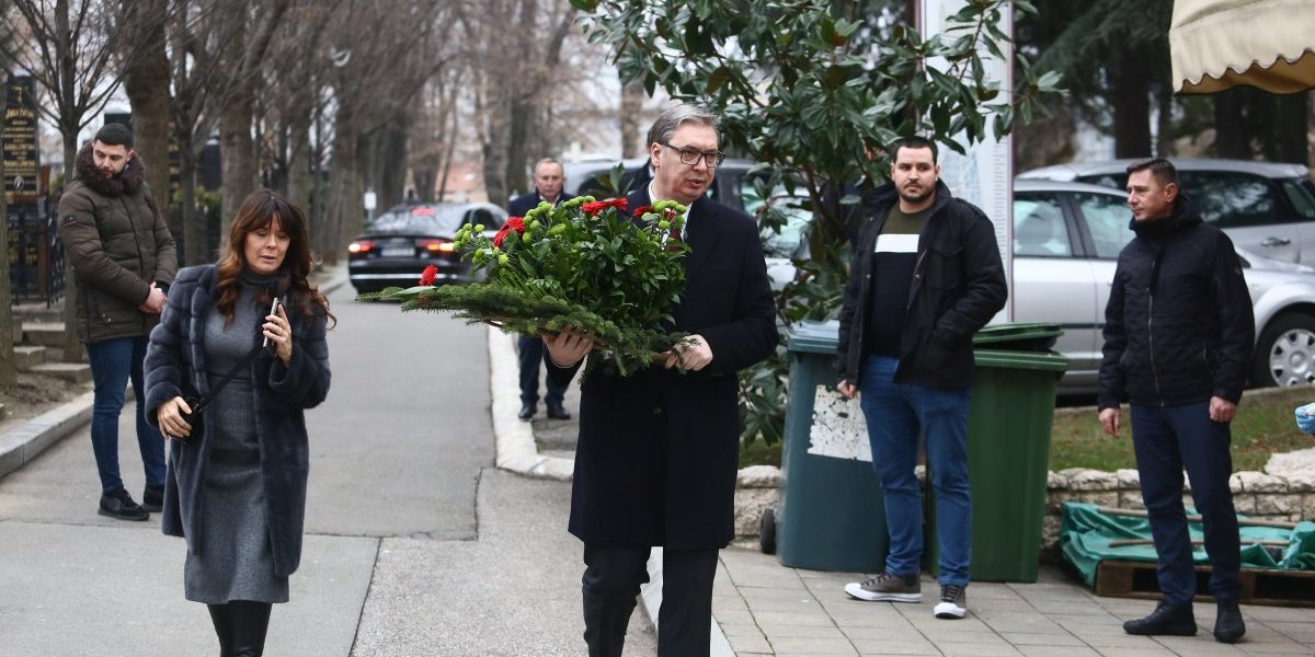 Kako se može videti na fotografijama koje objavljujemo, predsednik je doneo buket crvenih gerbera.