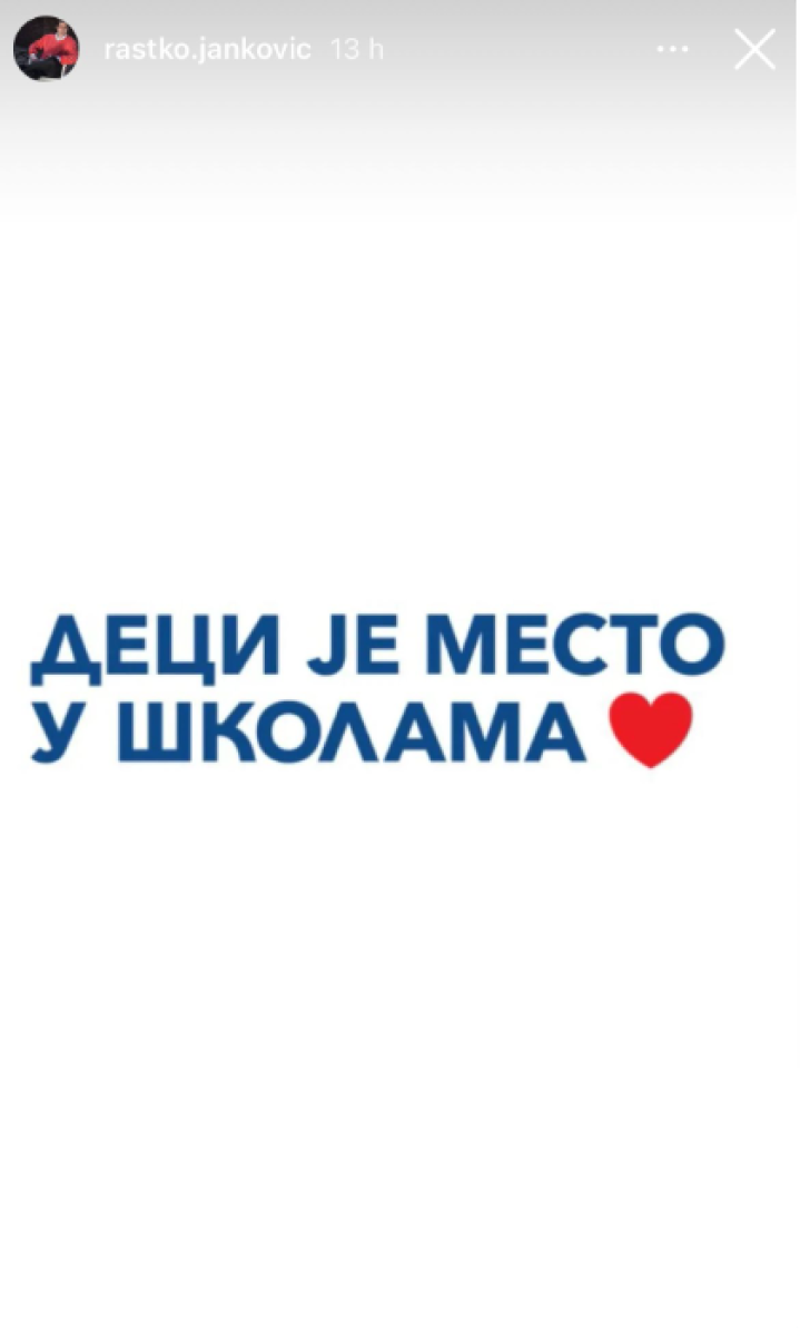 Janković je samo jedna od javnih ličnosti, sportista i radnika u kulturi koji su se danas sa istim stavom oglasili o ovoj temi. Svoju poruku poslao je preko svog zvaničnog Instagram profila: