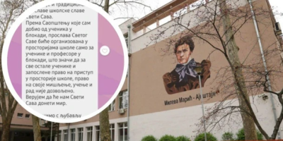 On je dodao da će proslava Svetog Save, prema saopštenju koje je dobio od učenika u blokadi, biti organizovana u prostorijma škole samo za učenike i profesore u blokadi, što, kako je ocenio, znači da za sve ostale učenike i zaposlene pravo na pristup u prostorije škole, pravo na svoje mišljenje, učenje i rad nije dozvoljen.