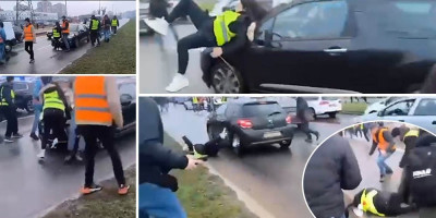 Devojka koja je uhapšena našla se na čelu kolone blokiranih automobila.