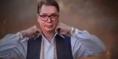 U snimku, vidimo predsednika Srbije Aleksandra Vučića obučenog u srpsku narodnu nošnju kako korača kroz vulkanski predeo, naravno, napravljen uz pomoć veštačke inteligencije, dok se u pozdini čuje pesma "Tamo daleko".
