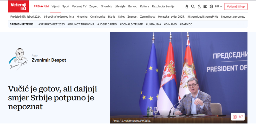 Dnevno.hr takođe se bavi Srbijom i antisrpskim protestima, dramatično uvećavajući broj okupljenih na Autokomandi.