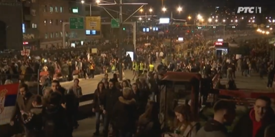 - Poštovani gledaoci, još jednom se izvinjavamo zbog nemogućnosti da vas izvestimo o studentskoj blokadi Autokomande u Beogradu. Nažalost, pojedini učesnici opkolili su našu ekipu, verbalno napali naše kolege i fizički ih sprečili da se uključe u Dnevnik. Uz pomoć saobraćajne ekipe uspeli su da napuste Autokomandu.