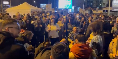 Pristalice opozicije u Novom Sadu pevaju i vesele se, jasno stavljajući do znanja da ne žale žrtve tragedije.