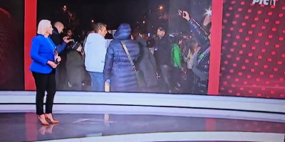 Oni su izviždani, a protestanti su stajali ispred kamere, psovali, i pravili buku.