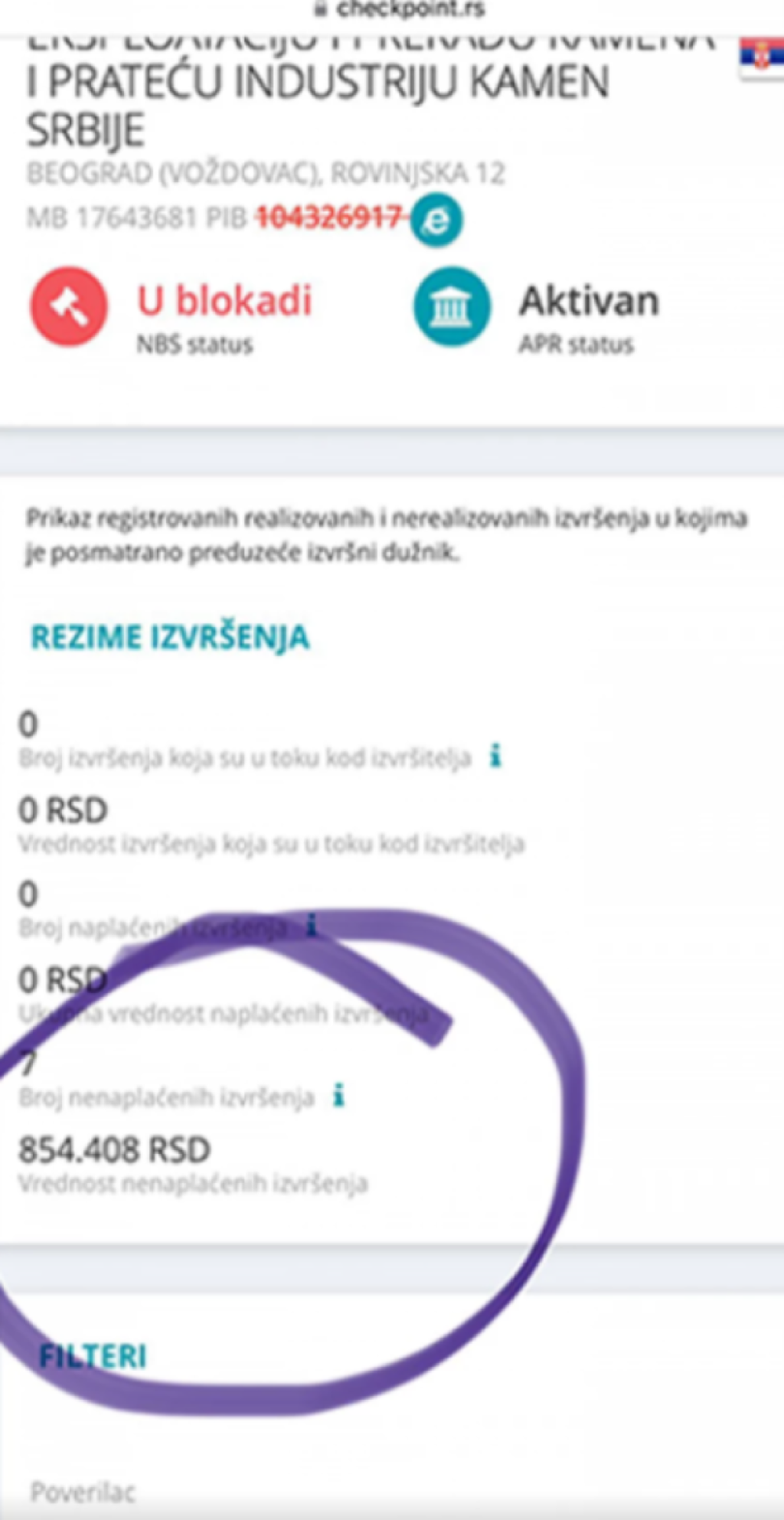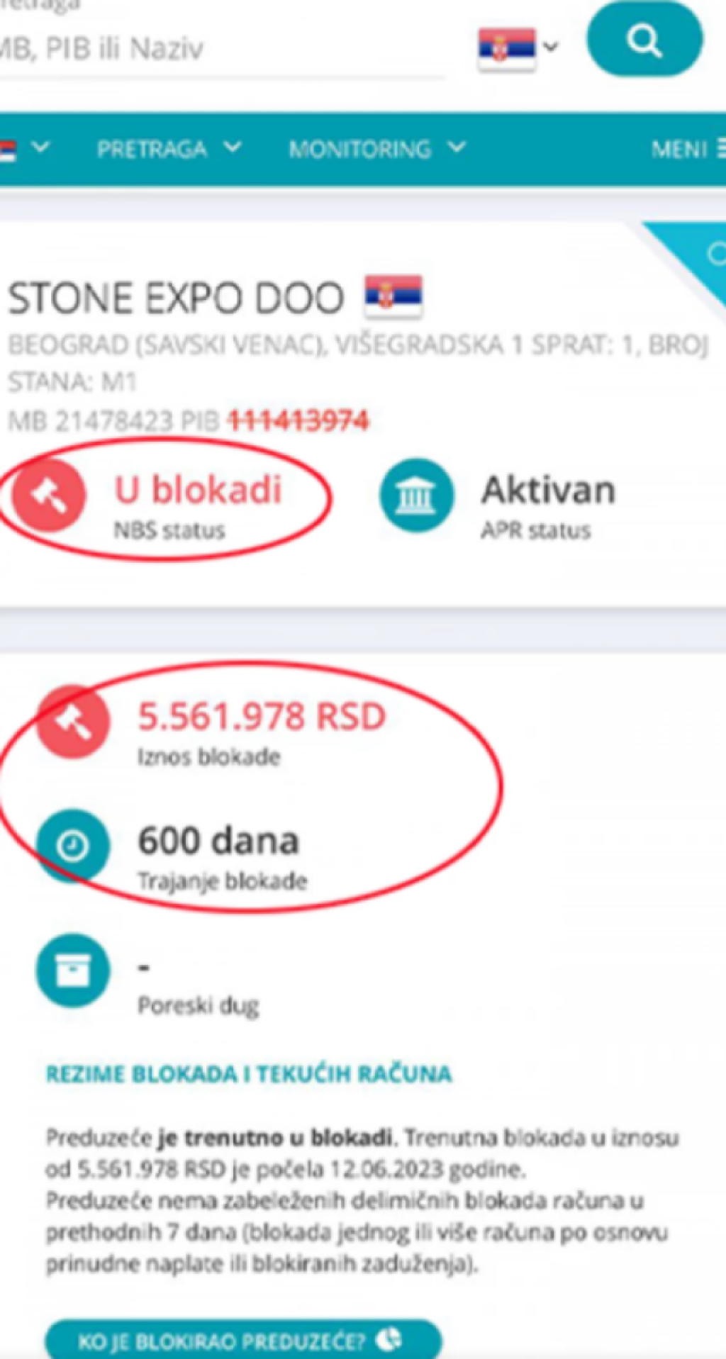 - "Oblutak" obrisana iz APR - "Stone expo" u blokadi 600 dana (5.561.978 dinara)