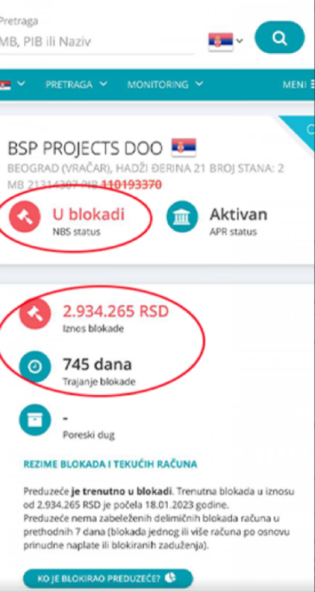 - "BSP group international" u blokadi 660 dana (169.514 dinara)