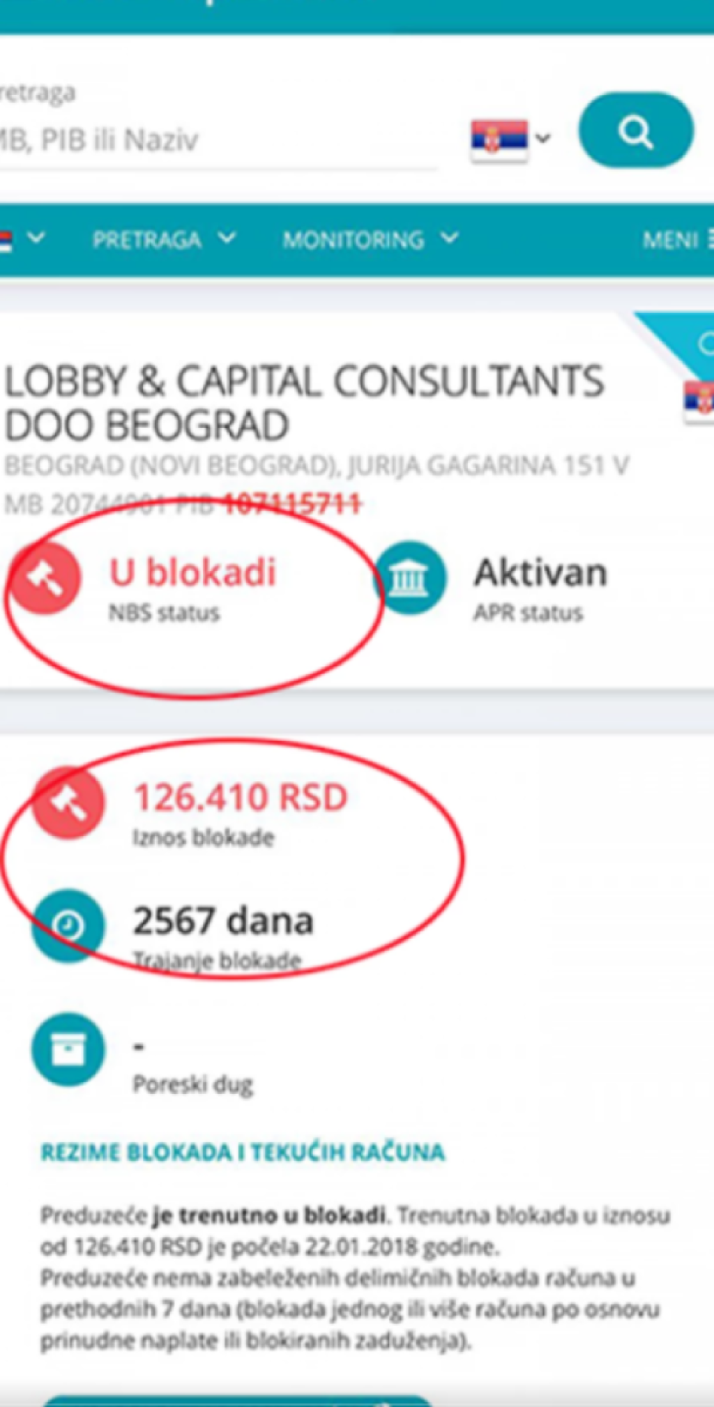- "Lobby&Capital" u blokadi 2.567 dana (126.410 dinara)