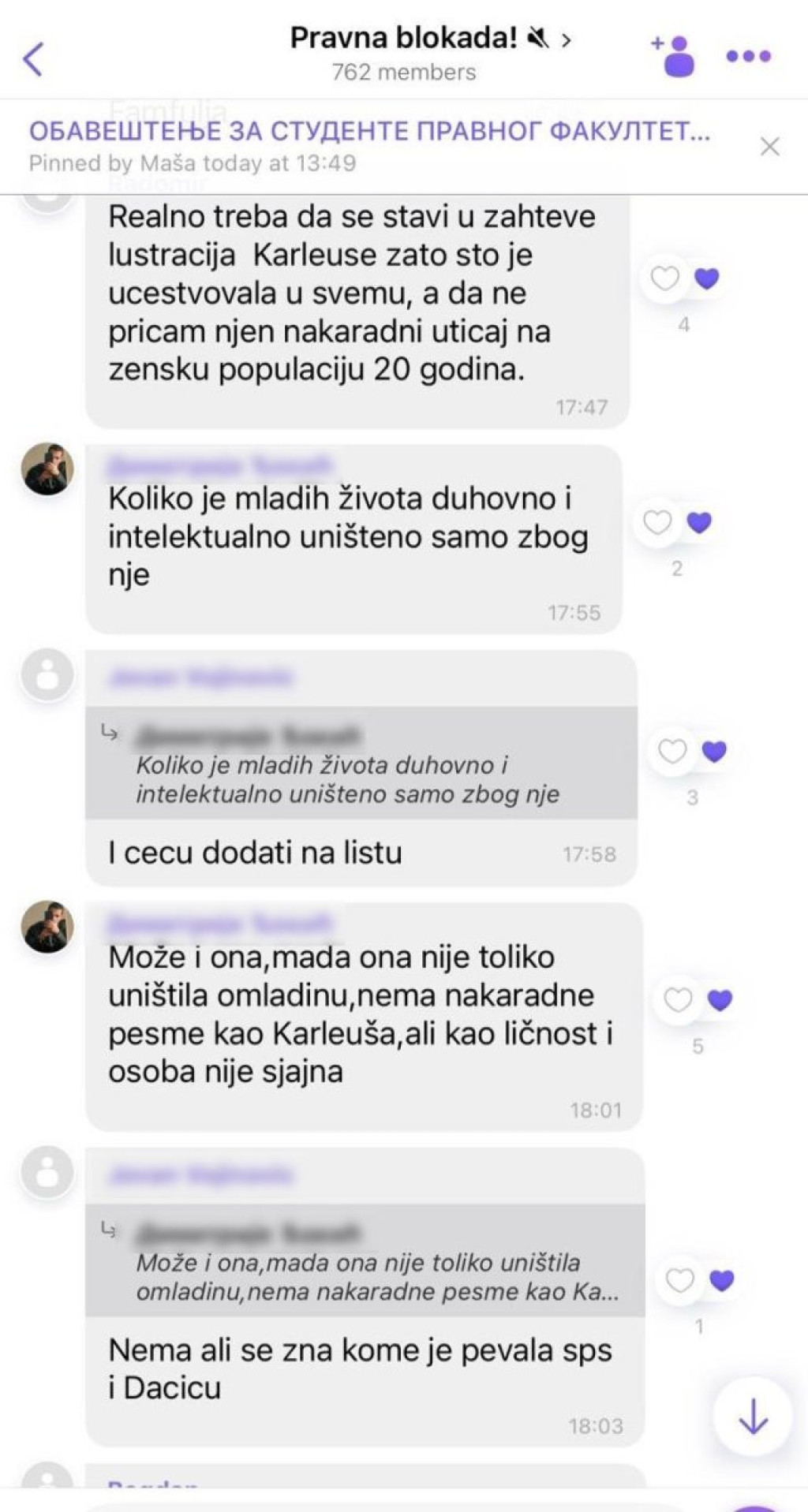 "Realno treba da se stavi u zahteve lustracija Karleuše zato što je učestvovala u svemu, a da ne pričam njen nakaradni uticaj na žensku populaciju 20 godina", jedan je od inicijalnih komentara ove skandalozne ideje.