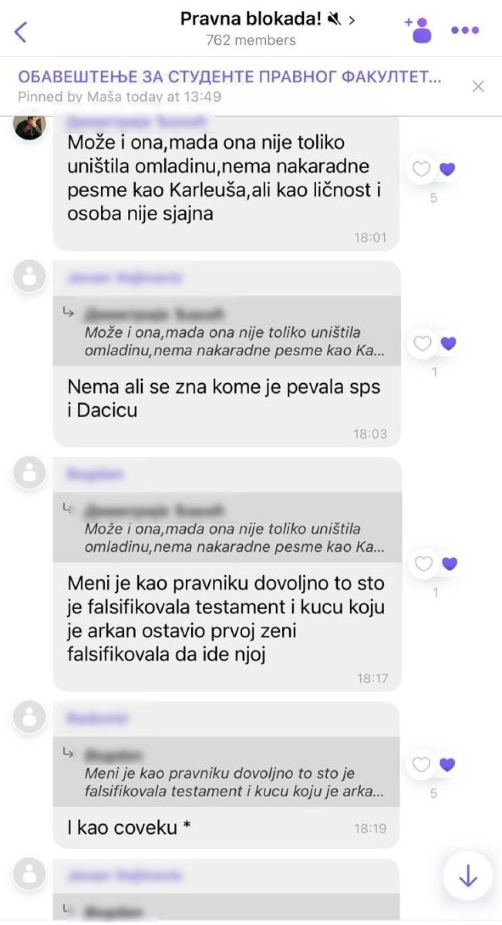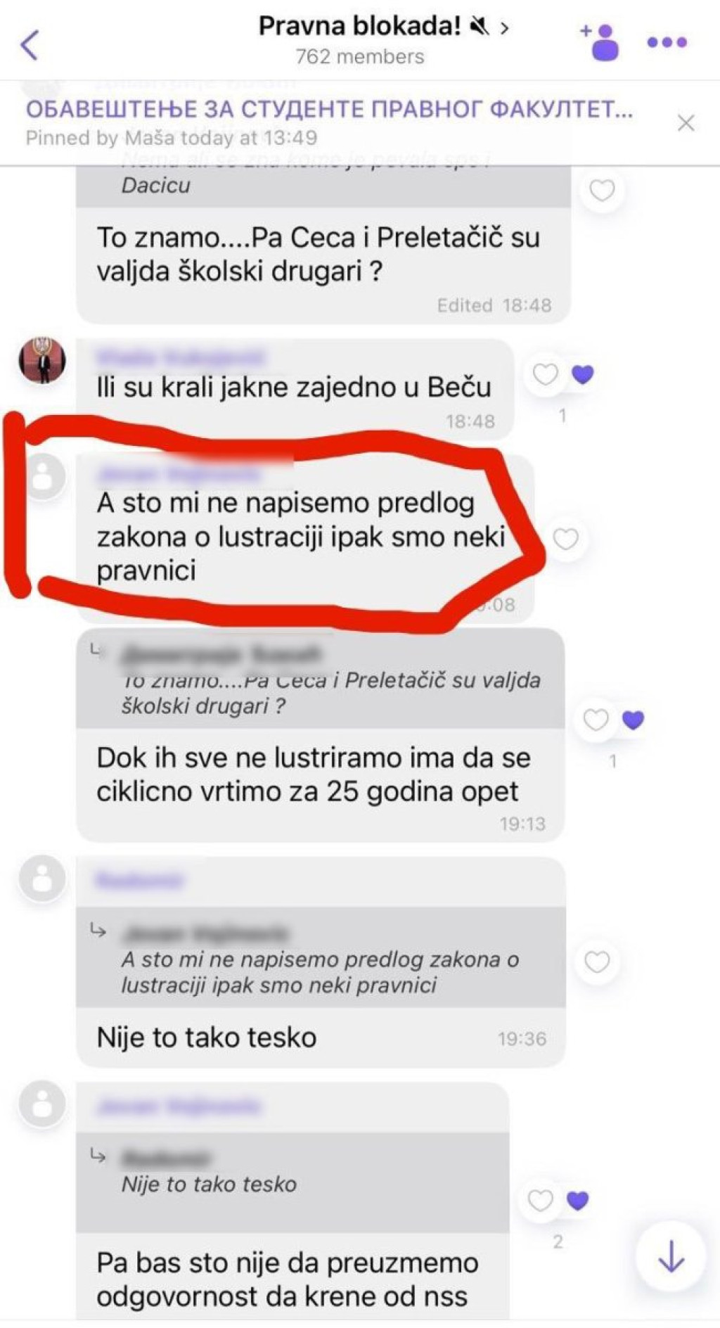 Studenti u prepisci navode da bi oni kao "neki" pravnici trebalo da napišu zakon o lustraciji, ali nije jasno na koji način bi u zakon ušla lustracija pevačice ili rijaliti učesnika, kao i LGBT ličnosti.