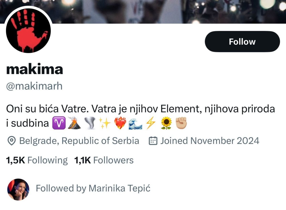 Profil koji je podelio ovu monstruoznu sliku, prati niko drugi do Marinika Tepić, jedna od članova antisrpske opozicije.