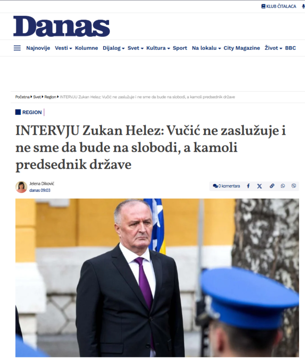 Govoreći za Danas, niskotiražni tabloid pod kontrolom tajkunu, Helez je poručio da Vučić ne sme biti na slobodi.