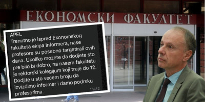 - Trenutno je ispred Ekonomskog fakulteta ekipa Informeram naše profesore su posebno targetirali ovih dana. Ukoliko možete dođite što pre bilo bi dobro, na našem fakultetu je rektorski kolegijum koji traje do 12. Dođite u što većem broju da izviždimo Informer i damo podršku profesorima.