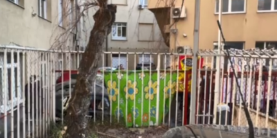 Zloupotrebljeni studenti stavljaju ćebad na ogradu dvorišta zgrade Ekonomskog fakulteta da sakriju prolazak rektora Vladana Đokića.
