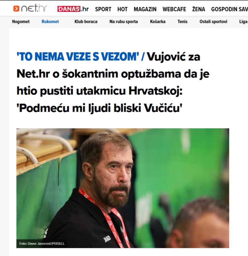 Nakon što je Rukometni savez Srbije (RSS) obelodanio šokantne informacije da je Vujović kao selektor prodao utakmicu Hrvatima, Vujović je brže bolje potrčao u Hrvatsku kako bi širio anti-vučićevsku propagandu.