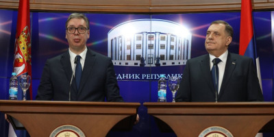 Dodik je u izjavi za medije u Banjaluci, nakon razgovora sa predsednikom Srbije Aleksandrom Vučićem, rekao da zna da Srbija stoji iza Republike Srpske u svemu i kao potpisnica Dejtonskog mirovnog sporazuma.