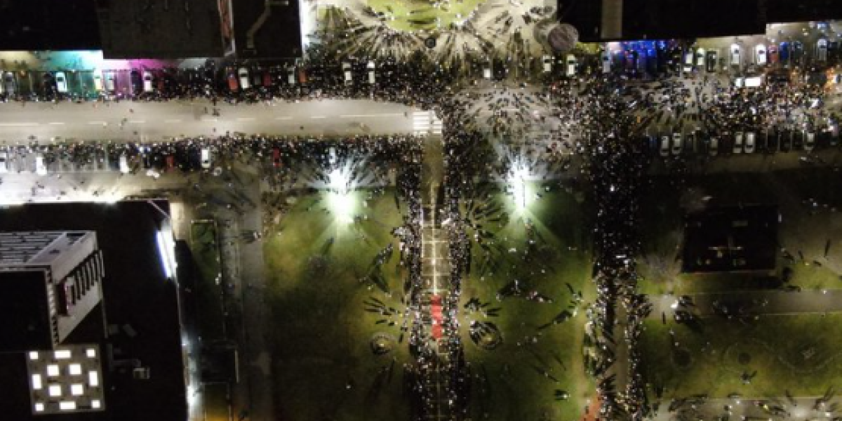"Molim Arhiv javnih skupova da nam napiše koliko ih se okupilo večeras u Kragujevcu. Dron sve lepo pokaže", objavio je Đukanović na Iksu.
