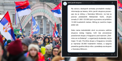 Prema računici AJS, organizaciji koju vode opozicionari, a koja se u javnosti predstavlja kao objektivna i nezavisna, na veličanstvenom skupu u Sremskoj Mitrovici povodom Dana državnosti, bilo je između 21.000 i 23.000 ljudi.