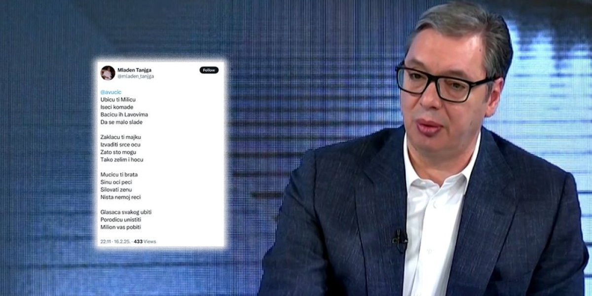 Na društvenoj mreži X, opozicionar Mladen Tanjga objavio je stihove u kojima direktno preti porodici predsednika Aleksandra Vučića.