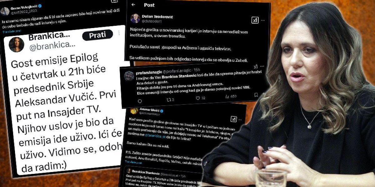 Predsednik Srbije Aleksandar Vučić gostovaće na televiziji Insajeder u četvrtak u 21 čas, a napadi na novinarku Brankicu Stanković počeli su gotovo istovremeno od kako je ova informacija obelodanjena u javnosti.