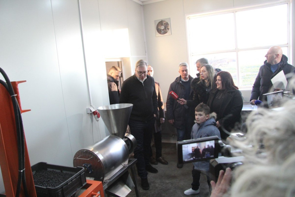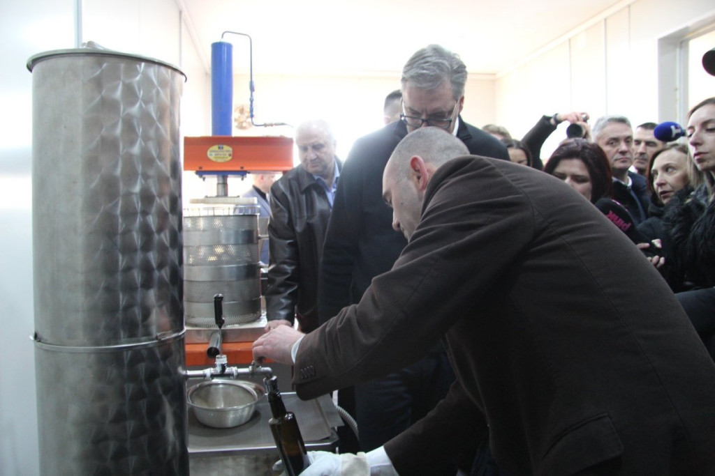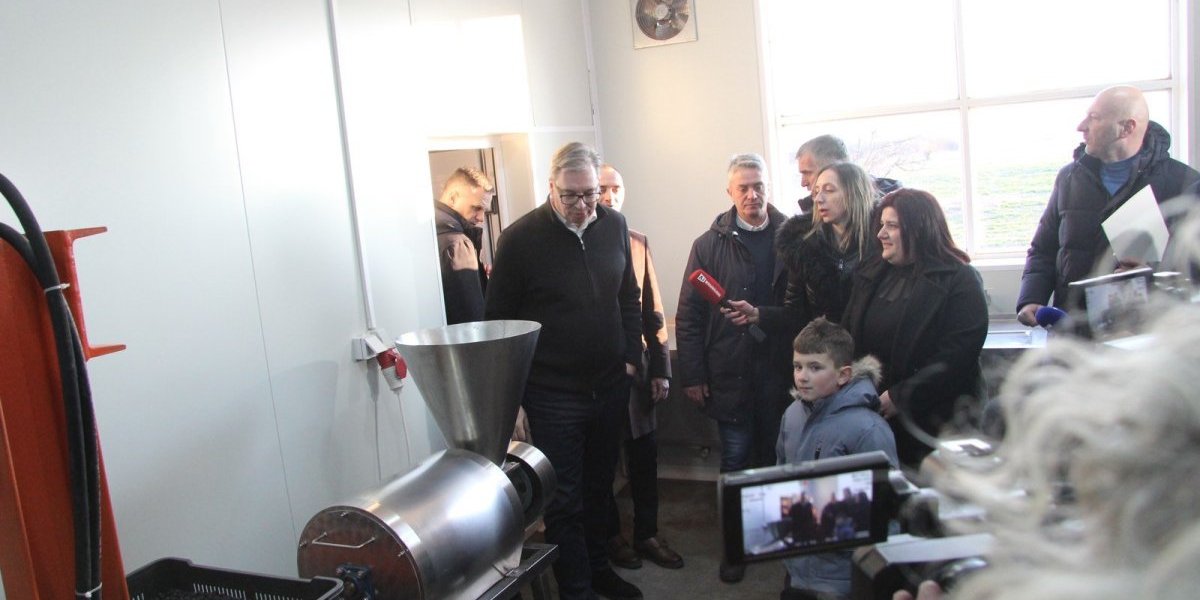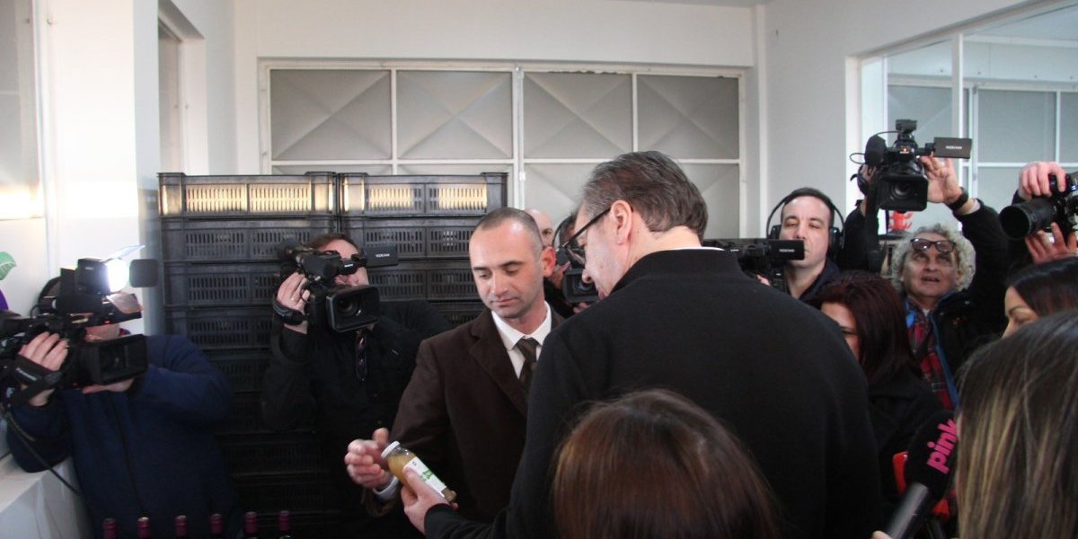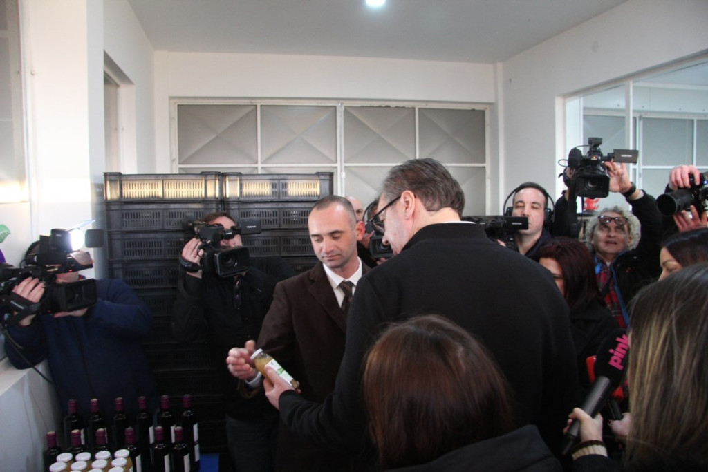Predsednika je zanimalo da li imaju radnike, te je dobio potvrdan odgovor. Potom je pozdravio i radnike, a domaćin mu je objasnio kako izgleda proizvodnja.
