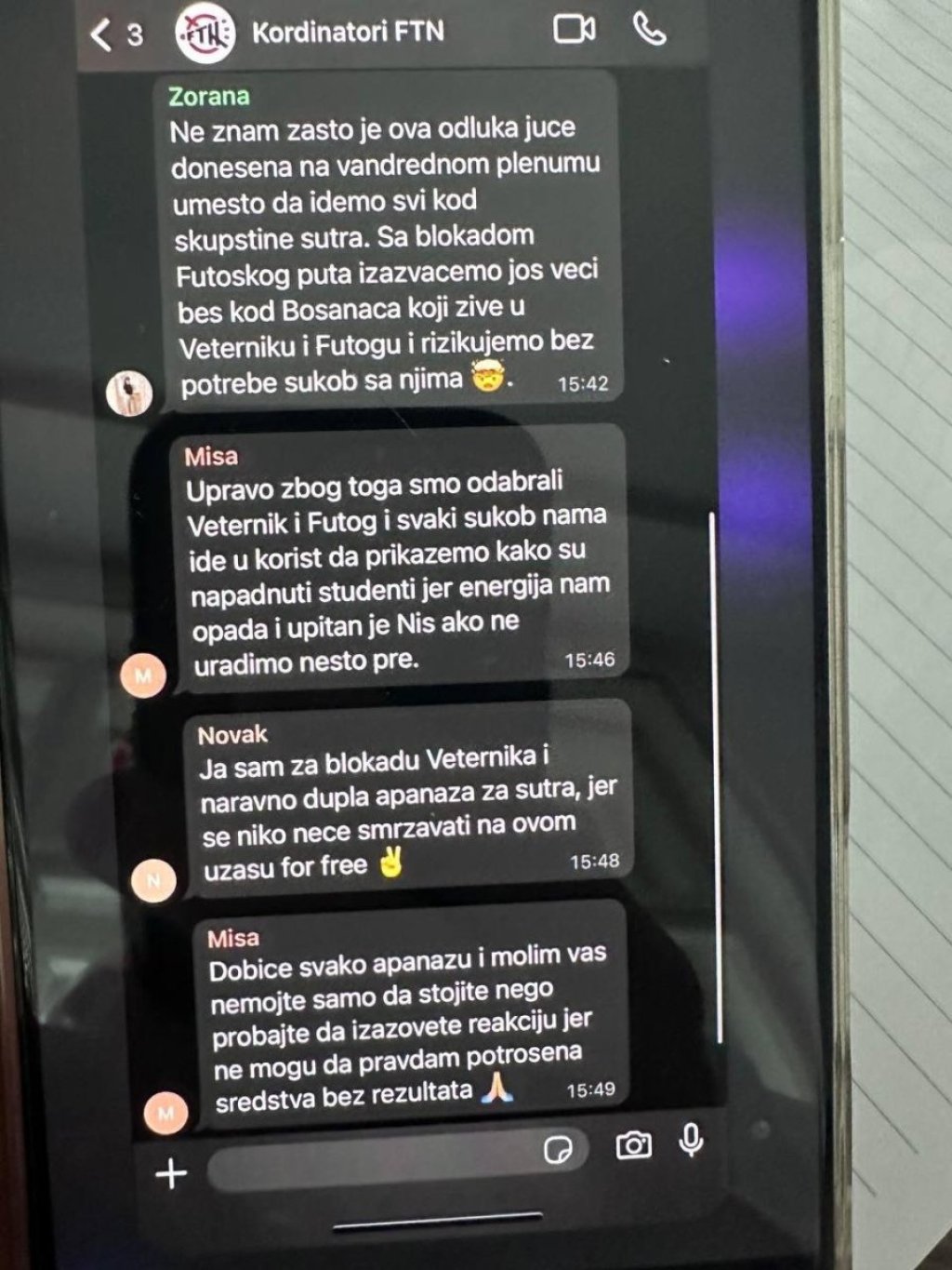 Pojavile su se poruke iz dve grupe blokadera sa FTN, jedna u kojoj su organizatori i druga u kojoj ima više članova.