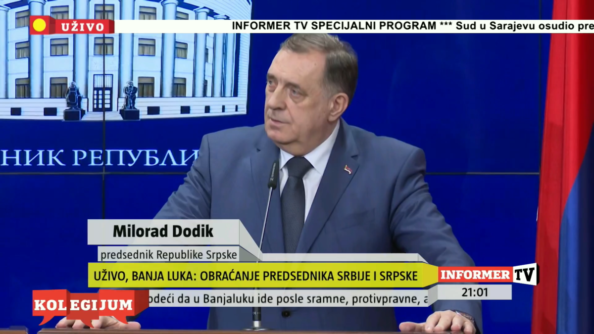 "Danas je ne lak dan, to jest težak dan za srpski narod u celini. Predsednik Dodik je prema našem dubokom uverenju, i samo da mi ne govore oni koji mi svakog dana sole pamet, doneta je prvostepena presuda u neverovatno čudna i besmislena presuda. Ona pokazuje ne samo kakav je odnos prema Dodiku. Ta presuda je uperena protiv RS i srpskog naroda u celini. Došao sam ne zato što mogu na bilo koji način da utičem na odluke rukovodstva RS, već da pružim podršku Dodiku i srpskom narodu".