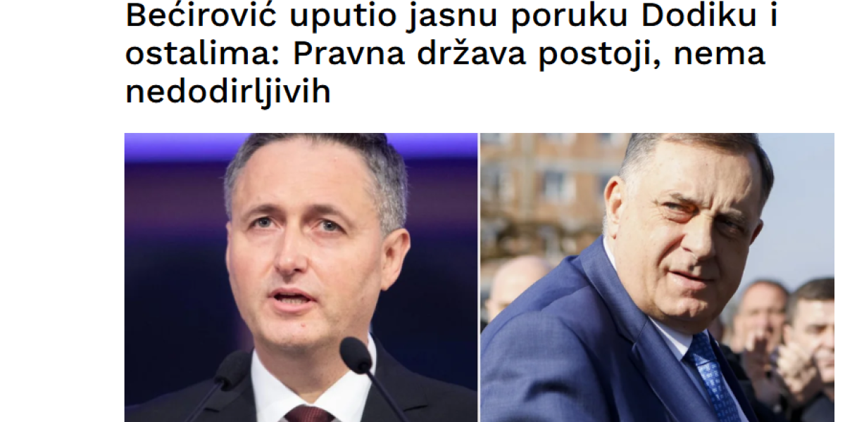- Čujemo dosta podvala, dezinformacija, notornih neistina. Zato ljudima na celoj teritoriji BiH treba reći istinu - ovo je prvostepena presuda Suda BiH, kao što je to slučaj u svakoj demokratskoj državi. Tako je treba i posmatrati - rekao je Bećirović u Dnevniku 2, a brže bolje potrčali da prenesu i ostali mediji u Hrvatskoj.