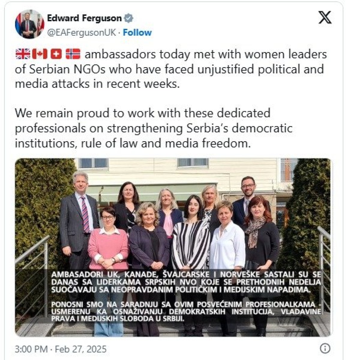 Batrganje stranih plaćenika! Pojurili kod ambasadora da ih zaštite od pokrenute istrage pljačke para od USAID! (FOTO)