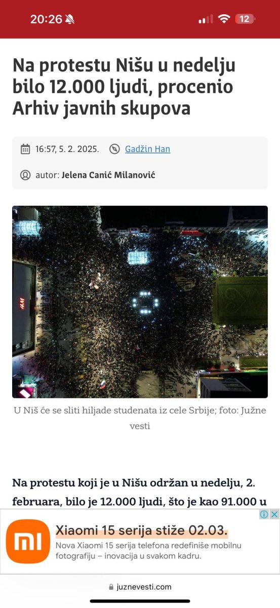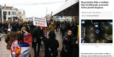 Sličan skup je održan u Nišu 5. februara, gde je prisustvovalo oko 12.000 ljudi, prema tvrdnjama Arhiva javnih skupova, što je mnogo bliže stvarnom broju prisutnih, ukazuju izvori sa terena.