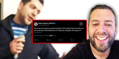 - Nemoj da vam pada na pamet da idete 15.03. ispred Informera koji je na adresi Bulevar Peka Dapčevića 17, Voždovac, Beograd. Ni slučajno - napisao je Topalović.