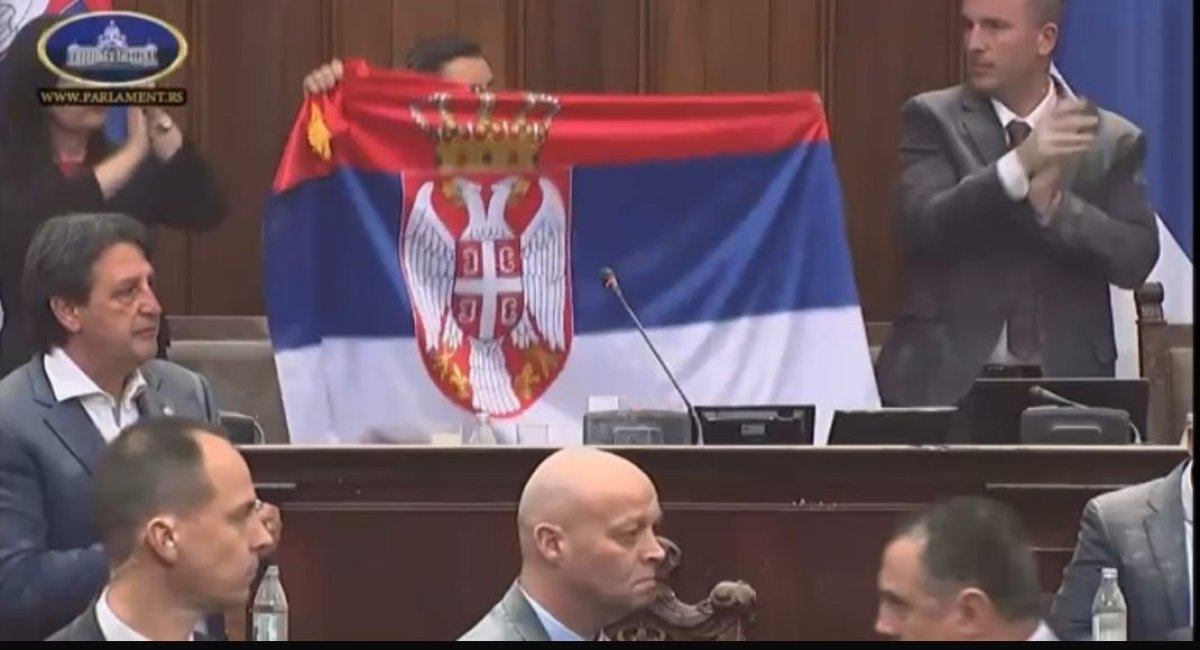 Ana Brnabić predsednica Narodne Skupštine Srbije razvila je srpsku trobojku i rekla kako je to odgovor na Kurtijevu politiku koju sprovodi opozicija danas u Parlamentu.