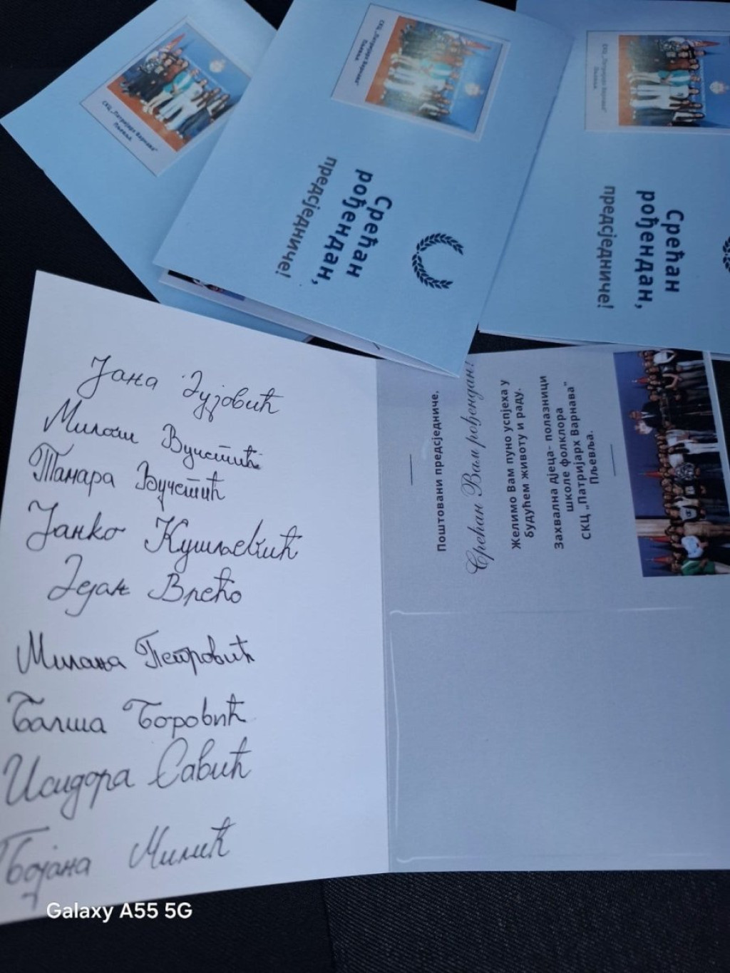 Srećan rođendan i puno uspeha u životu i radu, predsedniku Vučiću poželeli su i polaznici škole folklore SKC “Patrijarh Varnava” iz Pljevalja.