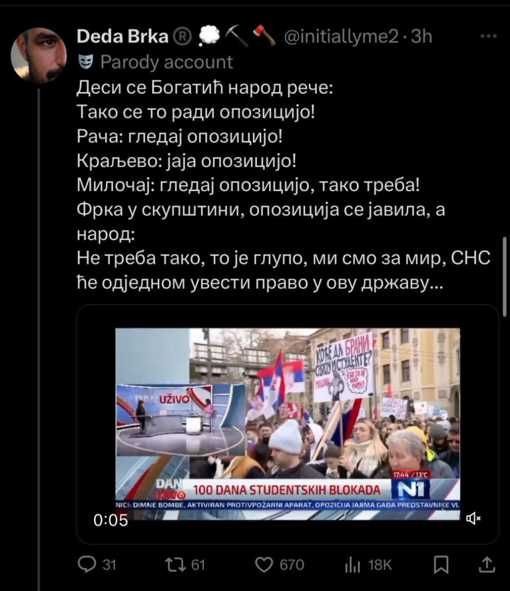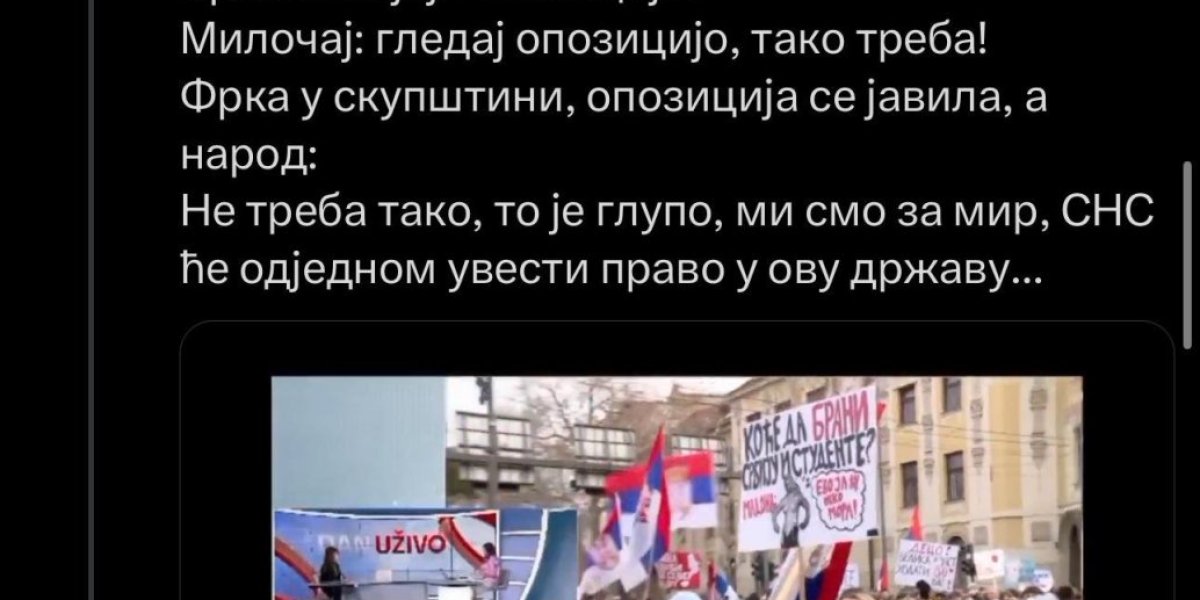 Antisrpska opozicija se preko studentskih zahteva pokušava domoći političkih poena, ali su studenti jasno stavili do znanja da ne podržavaju divljanje u Parlamentu.