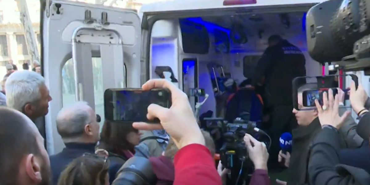 Hitna pomoć stigla je ispred Skupštine grada pošto ima povređenih.