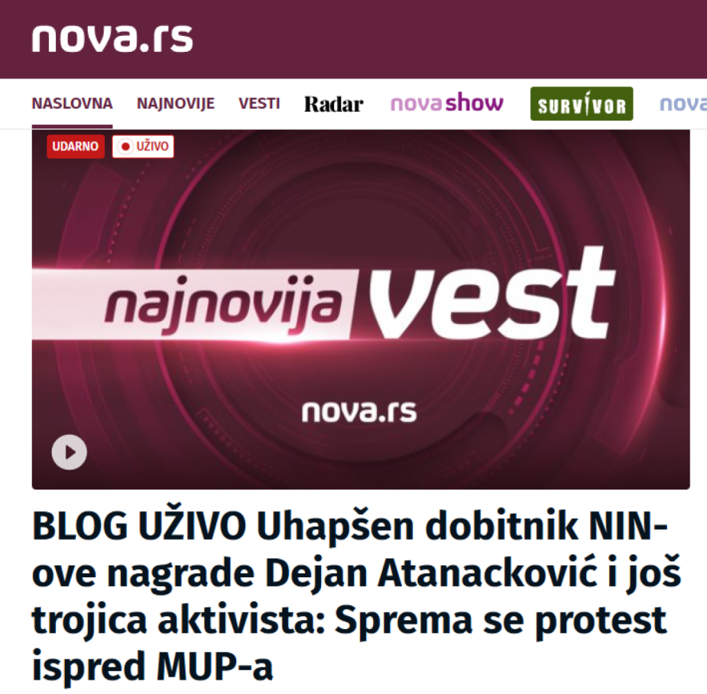 Oštro osuđujem vandalizam koji je takozvana opozicija počinila u Skupštini grada Beograda, pokazujući potpuno nepoštovanje institucija i demokratskih principa. Nasilno ponašanje i remećenje rada gradske skupštine nisu sredstva političke borbe, već čin koji predstavlja napad na pravni poredak i stabilnost grada. Politički dijalog mora se voditi argumentima, a ne silom i destrukcijom. Još snažnije osuđujem brutalan napad na novinarku Branku Lazić, koja je samo obavljala svoj posao, izveštavajući javnost. Napad na medijske radnike nije samo lični napad, već direktan udar na slobodu govora i temelje demokratije. Svaki oblik nasilja nad novinarima je nedopustiv i zahteva hitnu i odlučnu reakciju nadležnih organa.