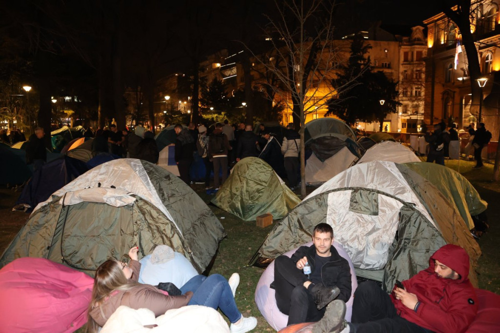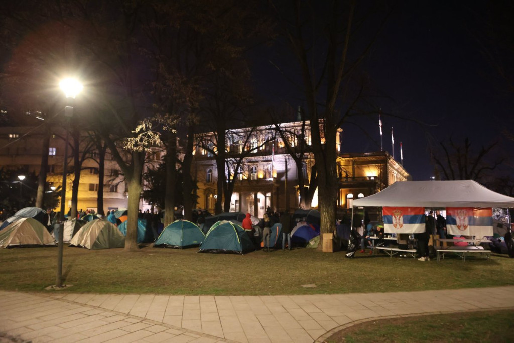 - Očekujemo studente iz svih gradova Srbije! Ovde su studenti koji žele da studiraju. Naši zahtevi su da se mi vratimo na redovno školovanje, nama znanje niko neće nadoknaditi. I devojke će ovde večeras spavati, ostajemo ovde dok se zahtevi ne ispune. Studenti se plaše da izađu i da iznesu svoje mišljenje, jer je na blokadi bilo dosta omladine, ja sam ovde u njihovo ime - kazala je Anđelija i dodala:
