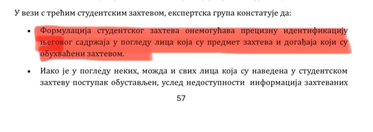 Sada to kažu, a svi do jednog iz te eksperstke grupe su stali iza tih zahteva!