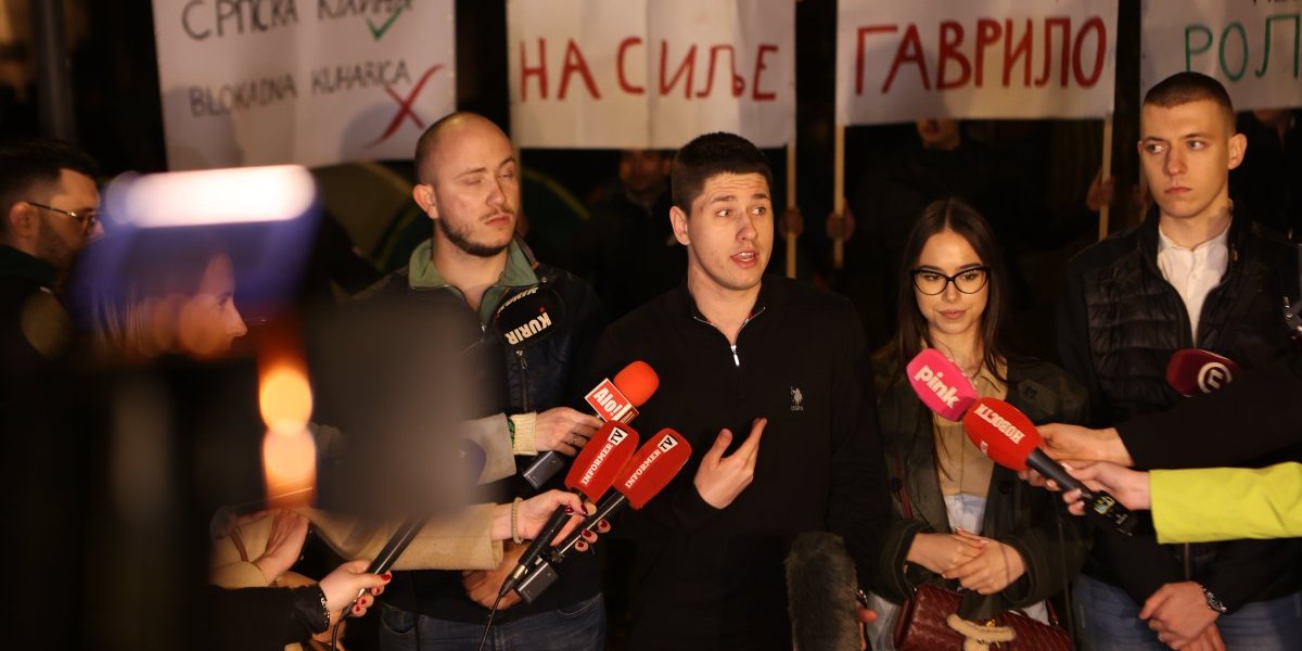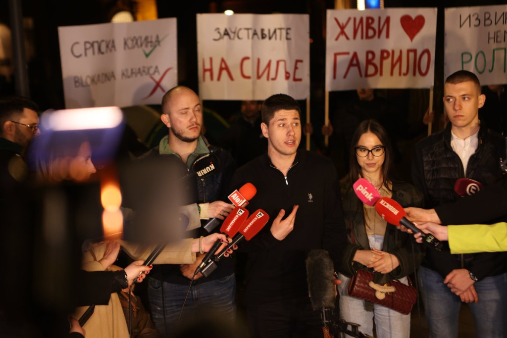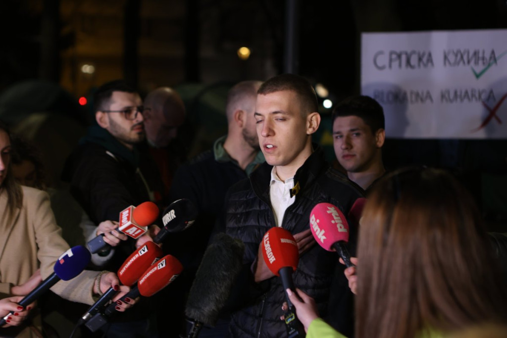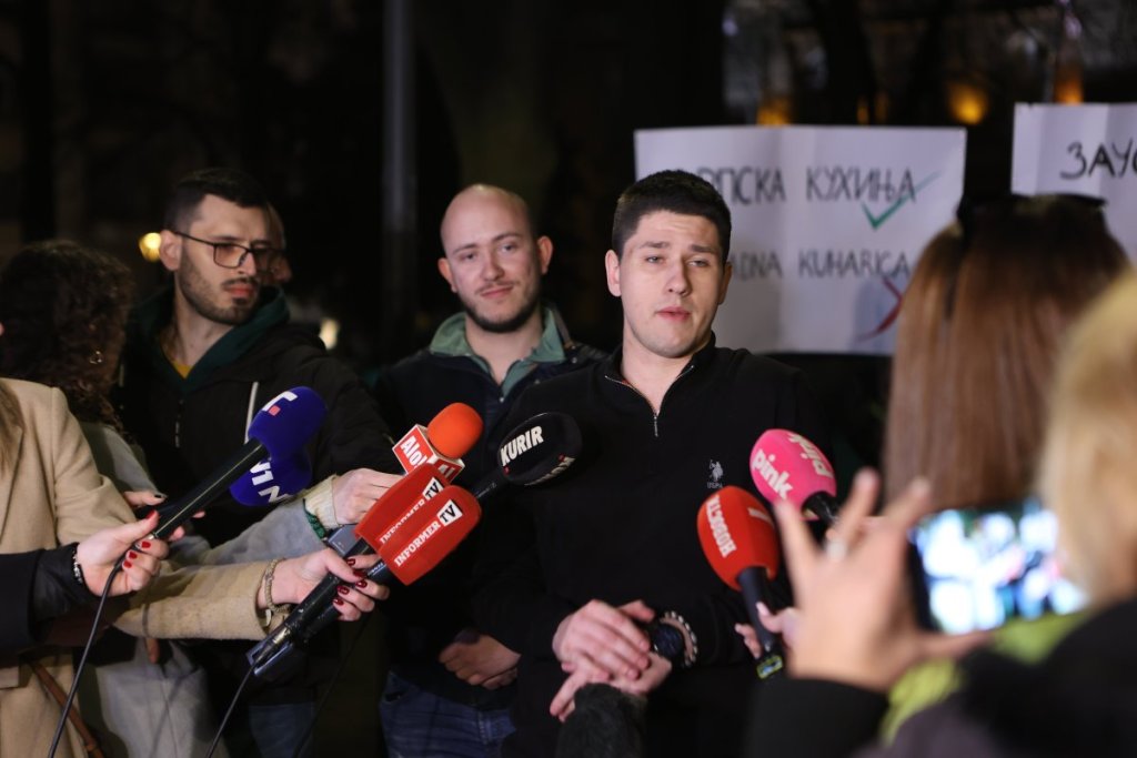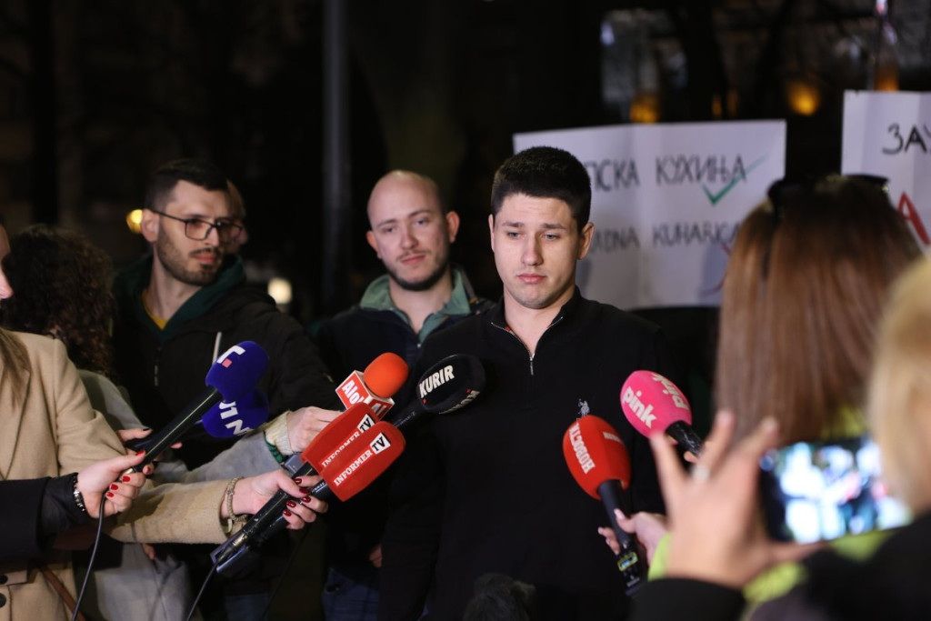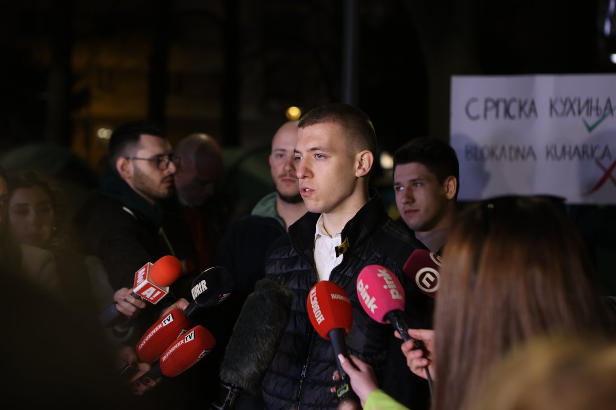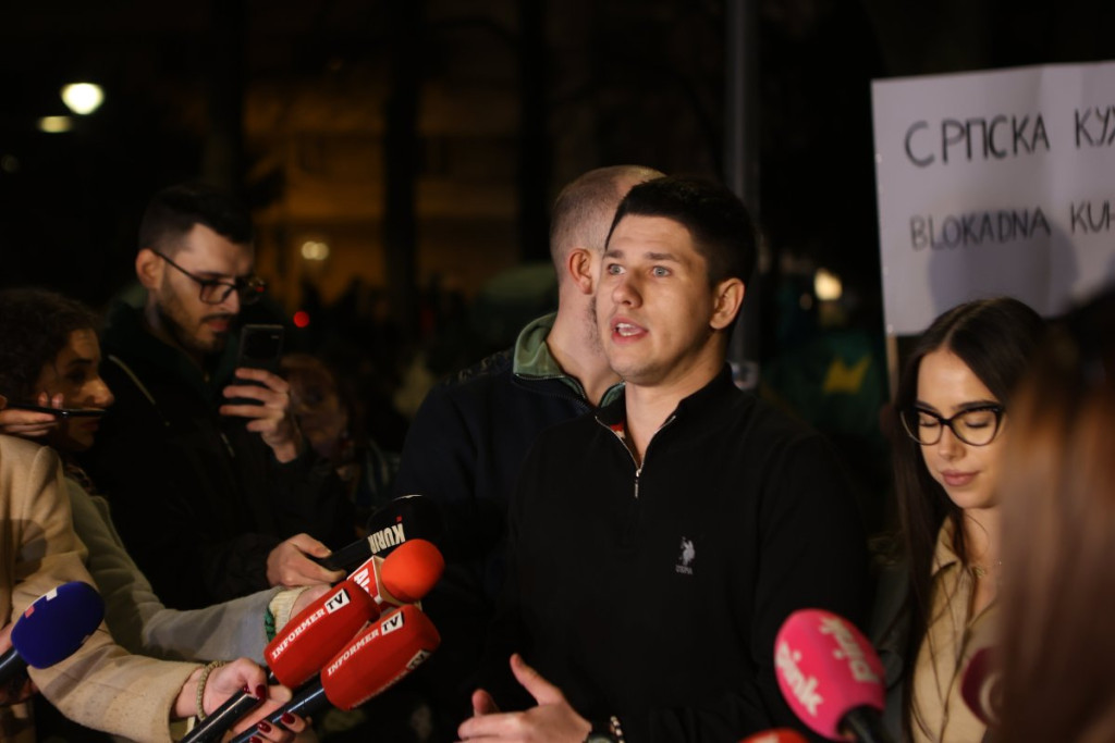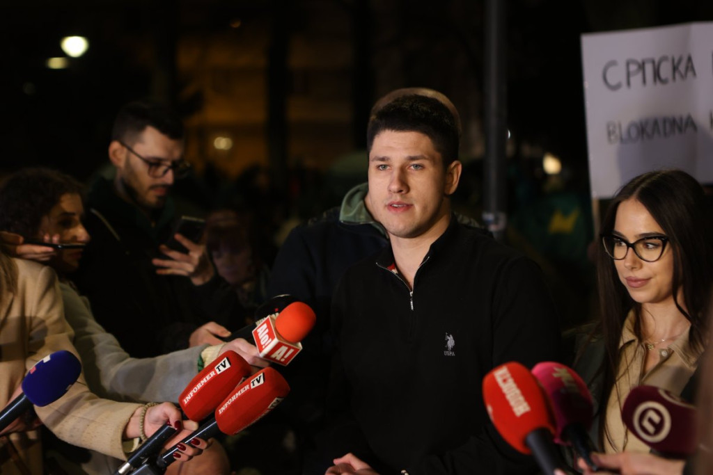 - Dobro veče svima, ja sam David Vuković, student FTN iz Novog Sada, ovde smo se okupili sa kolegama koji su došli iz raznih delova Srbije, čini mi se da najviše vidim svojih kolega iz Novog Sada. Naš prvi zahtev, a ujedno i najvažniji je početak nastave na fakultetima i svim visoko naučnim ustanovama do 10. marta, a najkasnije do 17.marta jer mi više vremena nemamo.